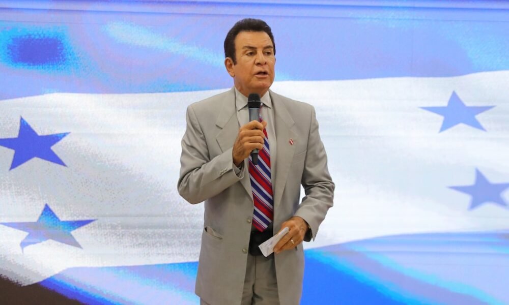 El candidato a la Presidencia de Honduras por el Partido Liberal, Salvador Nasralla, habla durante una rueda de prensa este viernes, en Tegucigalpa (Honduras) EFE/ Gustavo...