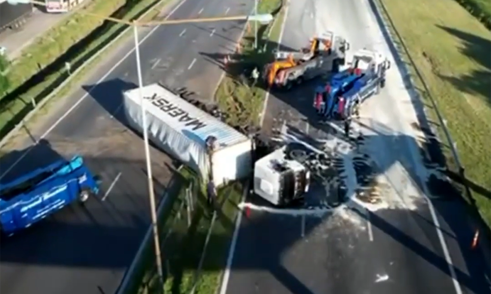 A primera hora de este jueves, cuando todavía no amanecía, un camión que transportaba aceite comestible en sentido al centro porteño por la autopista Panamericana volcó,...