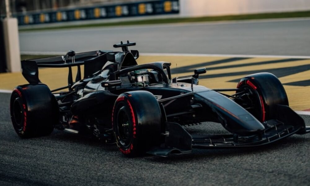 La primera salida a pista del Aston Martin fue con un diseño de camuflaje, pero despertó las preguntas durante los tests privados de Barcelona (Foto: @F1)...