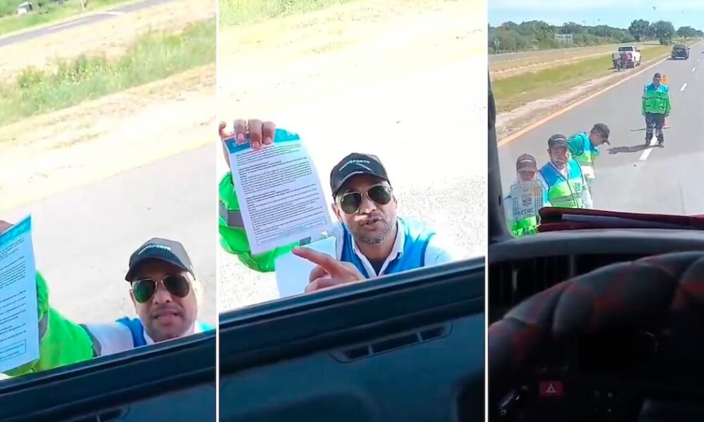 El video se hizo viral en el acto. Un inspector de tránsito se acerca al chofer de un camión y le exige el pago de una...