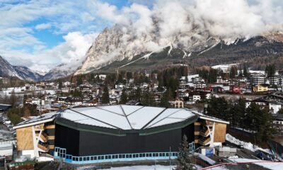 Una postal del Cortina Curling Olympic Stadium y la montaña Cristallo, una de las sedes de los Juegos Olímpicos de Invierno (REUTERS/Claudia Greco) La cuenta regresiva...