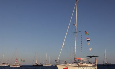 Veleros de la Flotilla Global Sumud, cuyo objetivo es llegar a Gaza con ayuda humanitaria, zarparon de la isla de Koufonisi, Grecia, el 26 de septiembre...