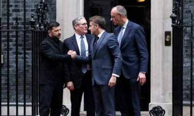 El primer ministro británico Keir Starmer, el presidente ucraniano Volodimir Zelensky, el presidente francés Emmanuel Macron y el canciller alemán Friedrich Merz (REUTERS/Isabel Infantes) Los principales...