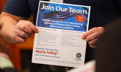 Un reclutador sostiene una hoja con información durante una feria de empleo en Fair Park, en Dallas. (AP Foto/LM Otero, Archivo) La economía estadounidense registró un...