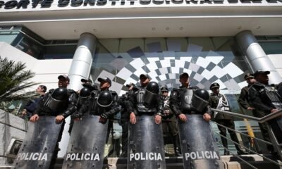 Fotografía de archivo en la que se captó a un escuadrón policial al resguardar la entrada principal de la sede de la Corte Constitucional del Ecuador,...